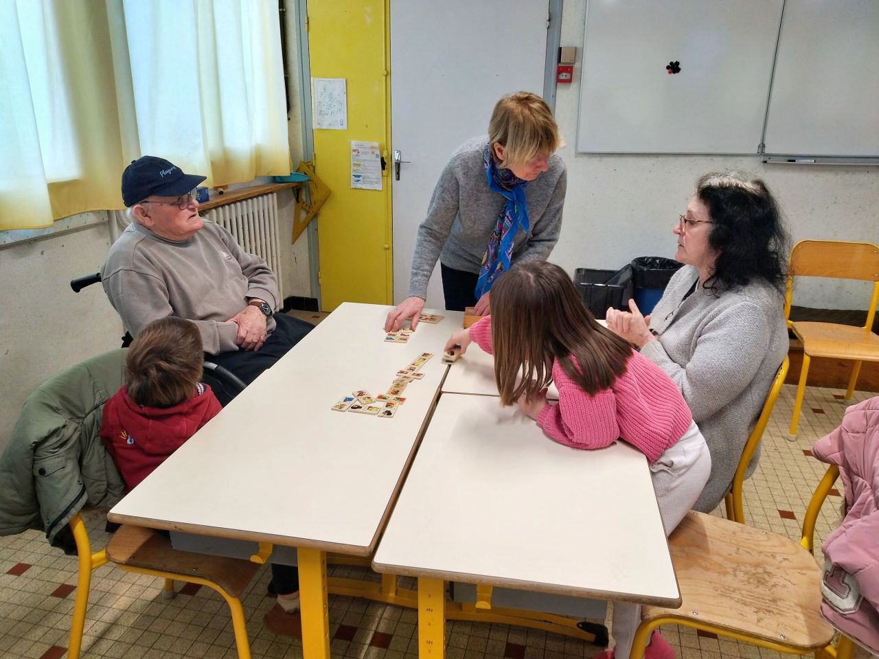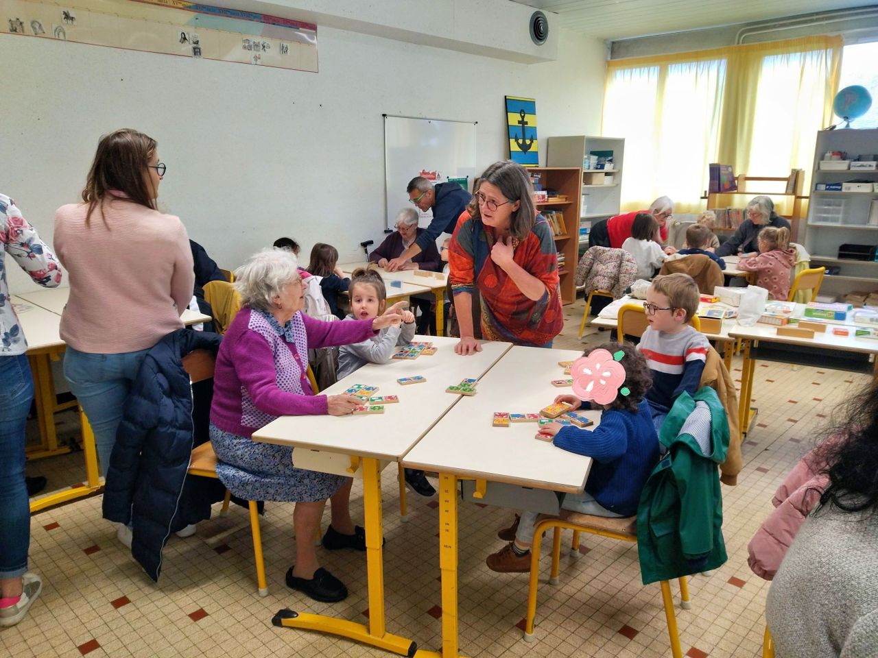 Comme chaque lundi, les personnes âgées de la résidence Saint Michel de Plougourvest sont venues passer une heure en notre compagnie pour jouer à différents jeux de cartes, memory et dominos. Nous avons beaucoup de plaisir à jouer ensemble et nous partageons un bon moment. Nous pouvons échanger en breton avec certains résidents qui sont très heureux d’utiliser avec nous leur langue maternelle.